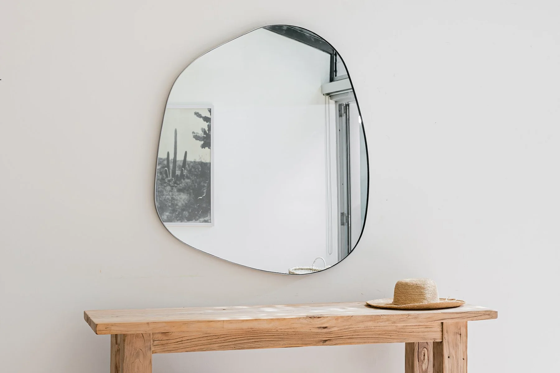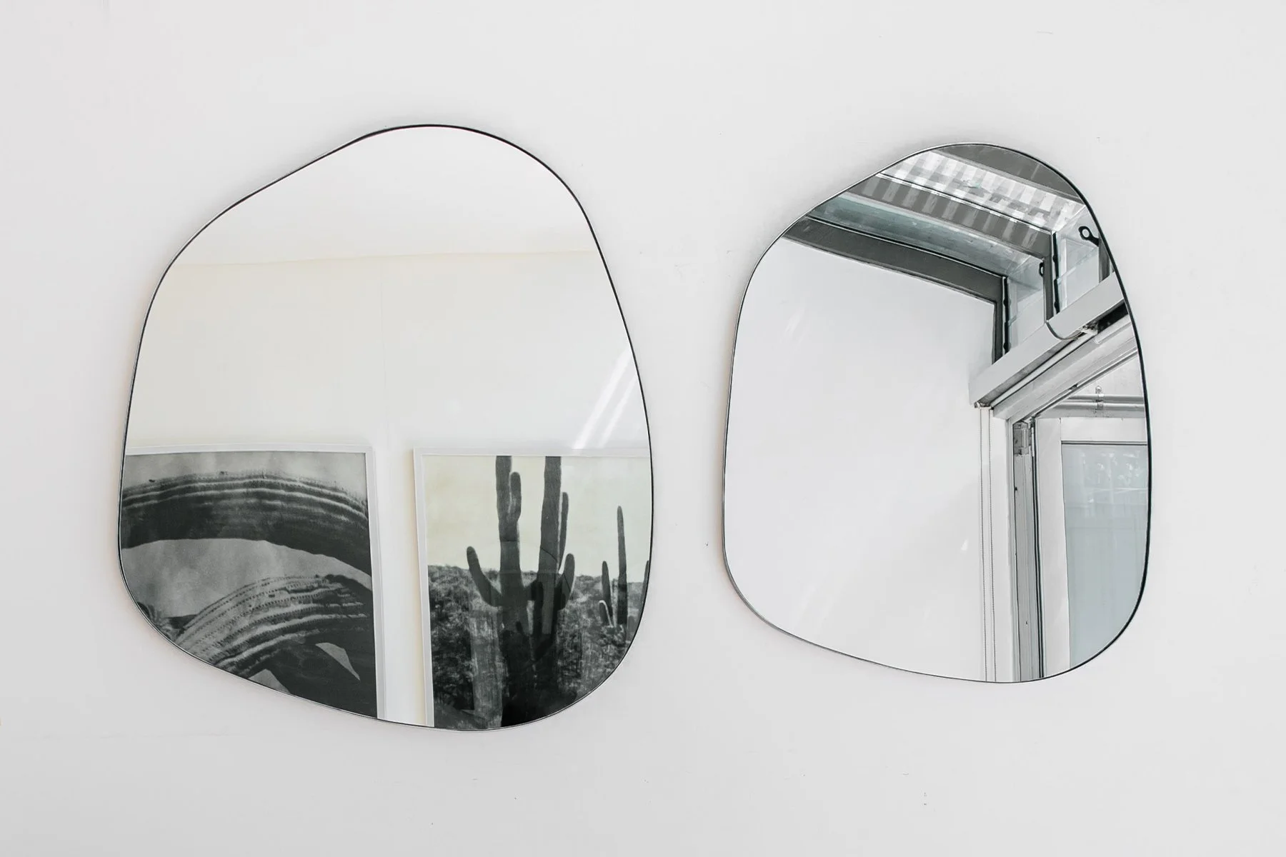 Slide 1 Slide 1 (current slide) Slide 2 Slide 2 (current slide) Slide 3 Slide 3 (current slide) Organically shaped glass mirror with gunmetal edging. The curved minimal design of the Yezze Mirrors brings life to any modern or contemporary space.